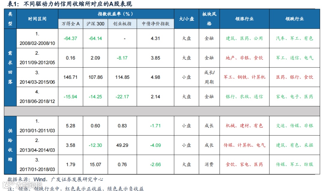 历史经验来看,信用供给主导的主动收缩阶段,A股盈利增速先上后下但仍处于相对景气区间,盈利韧性+政策收缩的组合形成分子与分母端的角力,市场震荡但大跌概率有限,盈利确定性强、景气高的方向取得超额收益。而进入到信用需求回落主导的被动收缩阶段时,A股非金融盈利加速下行,形成盈利下行+政策拐点未至的组合,除14-15年的脱实入虚之外,A股通常在该区间录得偏负面的收益。