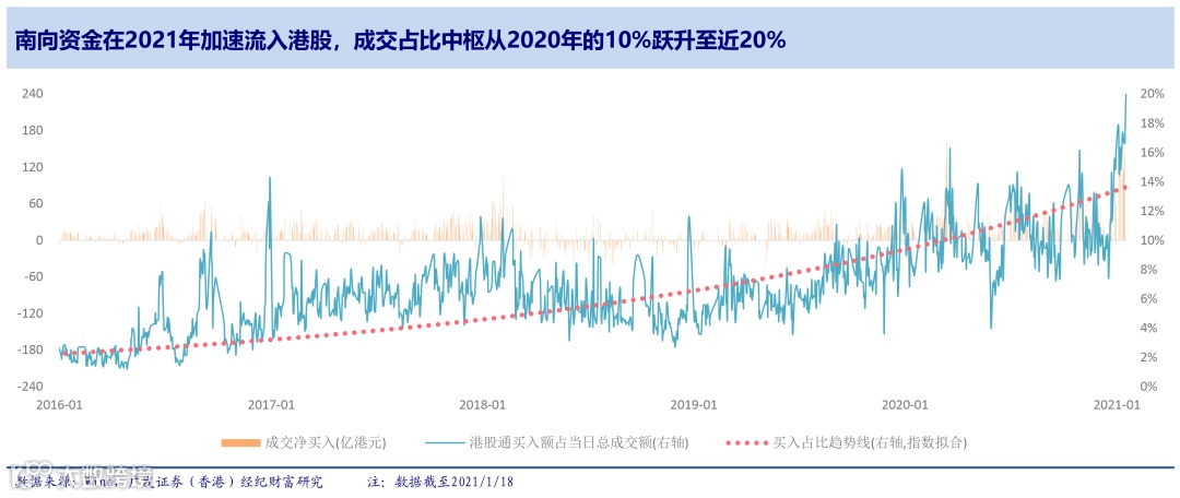 自2021年以来,南向资金加速流入的信号已经出现