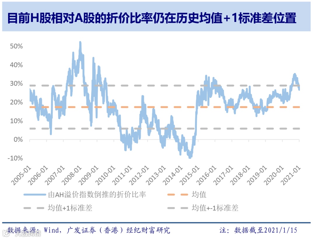 (2)AH股溢价指数在2018年之后开始攀升,去年10月底一度创下十年新高,显示出“北水”并未能填平两个市场之间的估值“沟壑”。