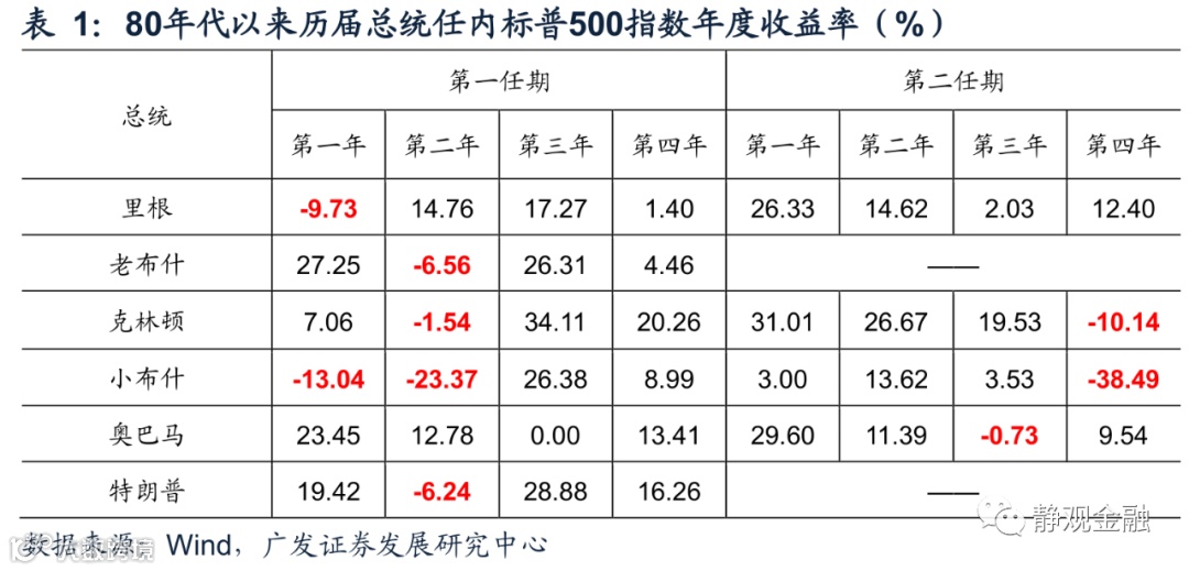 实现群体免疫后,财政和货币政策均将转向,美股调整风险较大。实现群体免疫后加税政策将成为内政核心,随着政府杠杆率回落10年期美债收益率将回升并对高估值美股形成冲击。美股“政治周期”亦表明今明两年美股调整几率较高。如表1所示,尽管美股涨多跌少,但每位总统上任前两年美股下跌几率极高,这与内政基调切换、资本市场有所不适等因素有关。