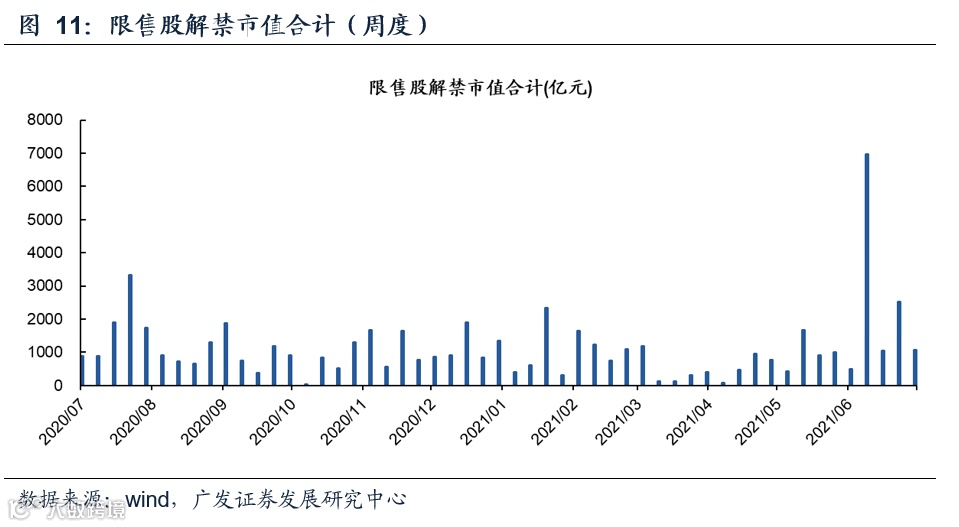 限售股解禁:上周限售股解禁409亿元,前一周限售股解禁1337亿元。预计本周限售股解禁613亿元。