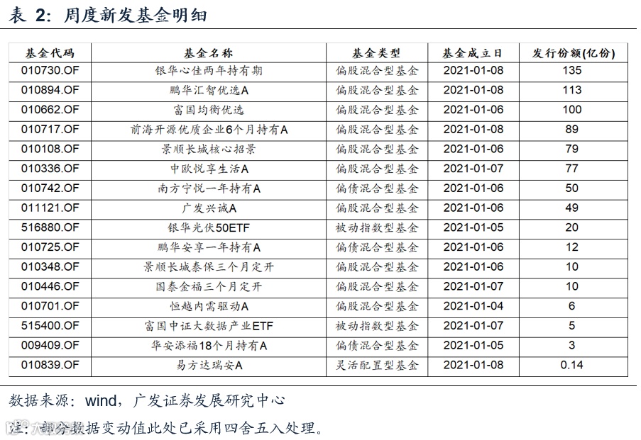 (3)新发基金(股票型+混合型): 上周新发基金规模为759亿元,前一周新发基金规模约231亿元,新发基金规模大幅上升。