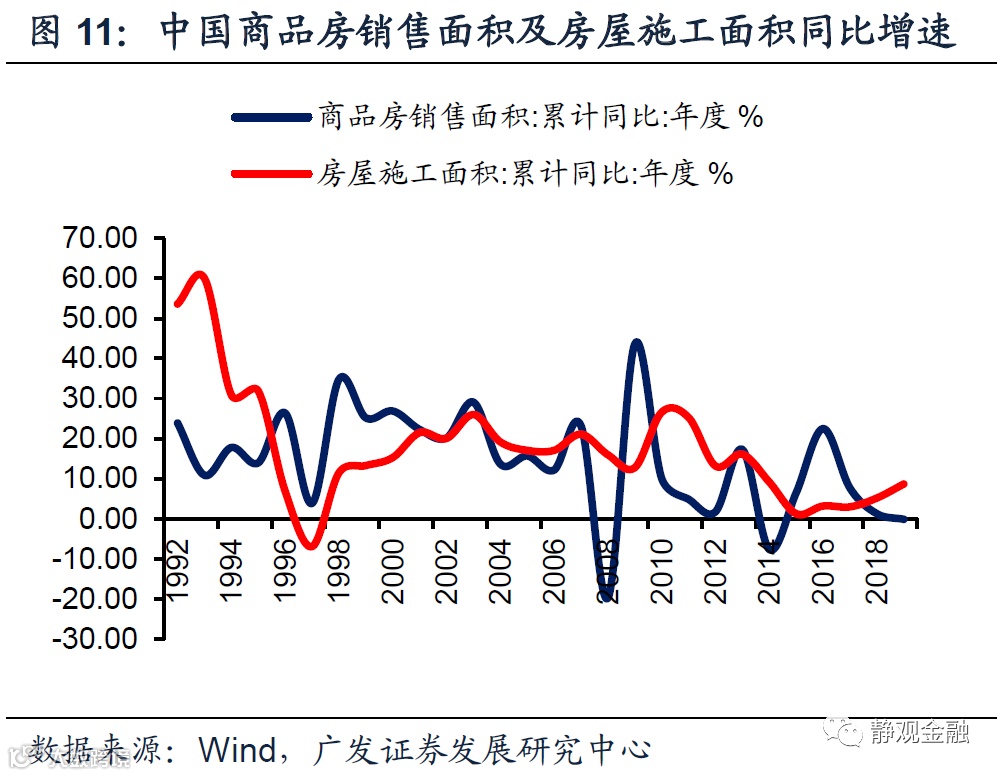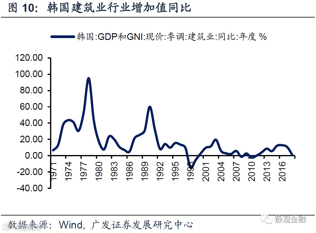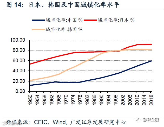 产业转移是承接国库兹涅茨周期的重要催化剂,并引发全球经济共振。结合全球经济增长、美国经济增速与产业转移等数据,我们认为全球的经济增长周期与产业转移周期同步,也即:上世纪50-60年代为一轮经济周期、上世纪70-80年代为一轮经济周期、上世纪90年代至金融危机前为一轮经济周期,金融危机以来进入二战后第四轮经济周期。该周期反映的是产业转移引发承接国城镇化率大幅抬升的库兹涅茨周期,且同期承接国的高速增长对其他经济体形成了明显的外溢效应、令全球经济共振。如图9-12所示,上世纪50-60年代日本、70-80年代韩国以及90年代到2011年前后中国的地产指标都始终保持高位。