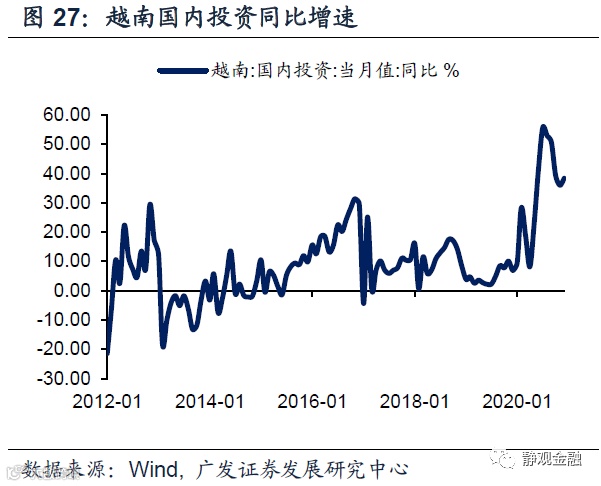不仅产业转移的启动发生在一轮全球经济衰退后,事实上产业转移上半场与下半场的切换也基本发生在一次经济衰退后,原因类似。正如前文所述,金融危机后,全球发生了二战后的第四轮产业转移;在疫情引发的全球经济衰退后,第四轮产业转移也将进入下半场。事实上,2020年1-12月越南国内投资同比增速均值为33.5%,显著高于2012-2019年的均值5.5%表明在RCEP落地预期之下全球已经逐步进入第四轮产业转移下半场。