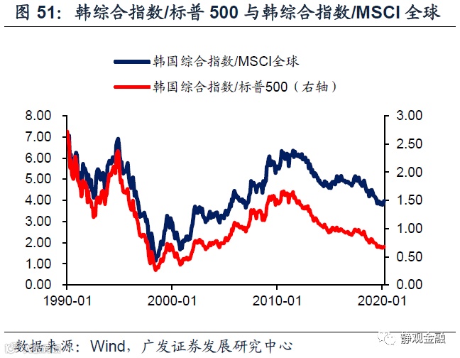 首先,我们在第四部分指出了一条跨周期的资产表现规律。每一轮产业转移承接国在完成产业升级并跨过中等收入国家陷阱后的10-20年间,其股指均能领跑全球,比如70-80年代的日本股指、1999年-2010年的韩国股指以及1983-1993年中国香港地区的恒生指数。2019年中国人均GDP已经超过1万美元十四五期间中国将跨过中等收入国家陷阱、跻身高收入国家行列,因此未来5-8年中国A股极有可能跑赢美股。