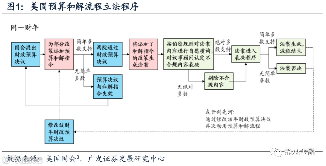 但近期事情发生了变化,4月5日美国参议院多数党领袖舒默的发言人声明:参议院议事顾问麦克唐纳表示可以修改预算决议,并在修改时囊括预算和解流程指令[4]。参议院议事顾问为无党派人士,职责是为参议院规则与程序提供建议。而历史上议事顾问的建议仅有一次被参议院议长所推翻,因此其建议相当于规则裁决。由此可见,如果该声明内容确凿,拜登基建及加税政策就将进入快速通道,参议院民主党人可以通过修改2021财年预算决议,在预算和解指令中加入加税及基建政策内容,并在2021财年(今年10月以前)即可利用和解流程通过。一旦成型,该操作也将开创美国国会立法程序的先河。