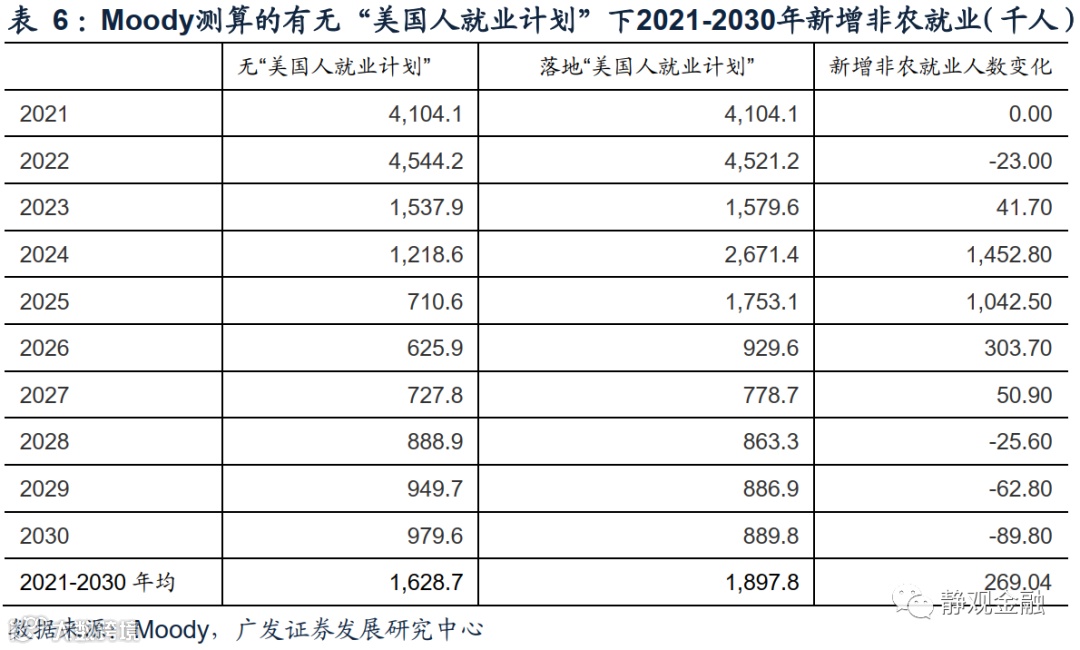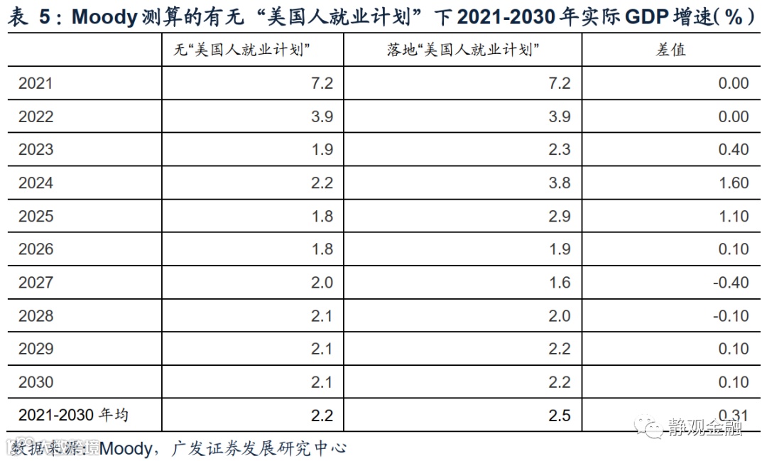 2.“美国人就业计划”将年均拉动实际GDP0.31%并创造269万非农就业岗位