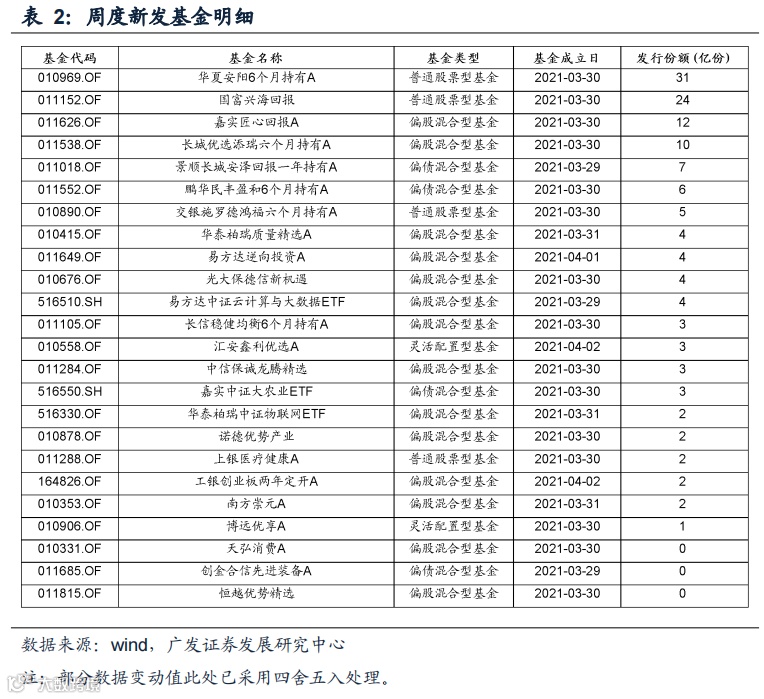 (3)新发基金(股票型+混合型): 上周新发基金规模为141亿元,前一周新发基金规模约312亿元,新发基金规模下降。