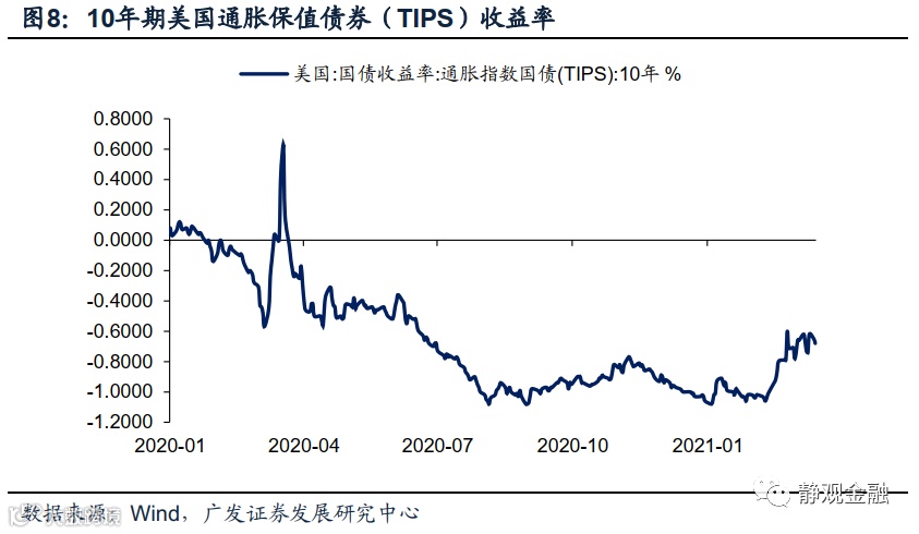 我们预计美联储将在Q3削减QE、年底10Y美债收益率有望破2%。现任美国财政部部长、美联储前主席耶伦提到第三轮财政刺激落地后明年(2022年)美国有望实现充分就业[3]。该判断带有很强的货币政策信号,说明最迟在2022H2美联储将引导加息预期。加息预期引导前美联储势必结束QE,而2014年美联储削减QE过程持续了10个月,因此今年Q3美联储或将开始削减QE。一般来说,降息结束到加息预期形成前对应着美债的熊陡过程,且最终10Y与2Y美债利差触顶。以史为鉴即便保守估计在下一轮加息预期形成前该利差也应高于2%。由于2Y美债收益率代表基准利率(预期),目前基准利率为0-0.25%,因此明年中期10Y美债收益率至少应该触及2.25%(2%加上目前基准利率上限)。由此可见今年底10Y美债收益率有望破2%,且实际利率(10年期TIPS收益率)亦有望在年底转正。