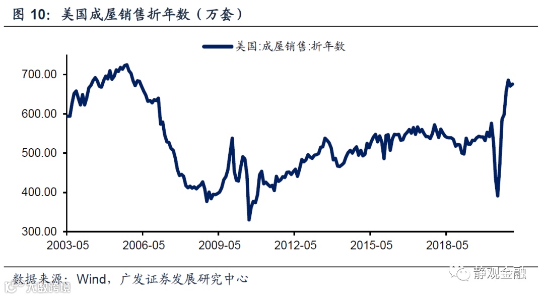 2020年H2美国终端耐用品强劲需求或有三点基础:政府的转移支付、疫情对服务消费的约束以及地产销售热。政府转移支付下居民收入未有明显受损。疫前服务消费占美国个人消费比重为66%,疫后该消费受到约束,令居民部门将收入向耐用品消费倾斜。此外,2020H2美国地产销售强劲并推动居民增加了家具、家电等地产后周期的消费支出。