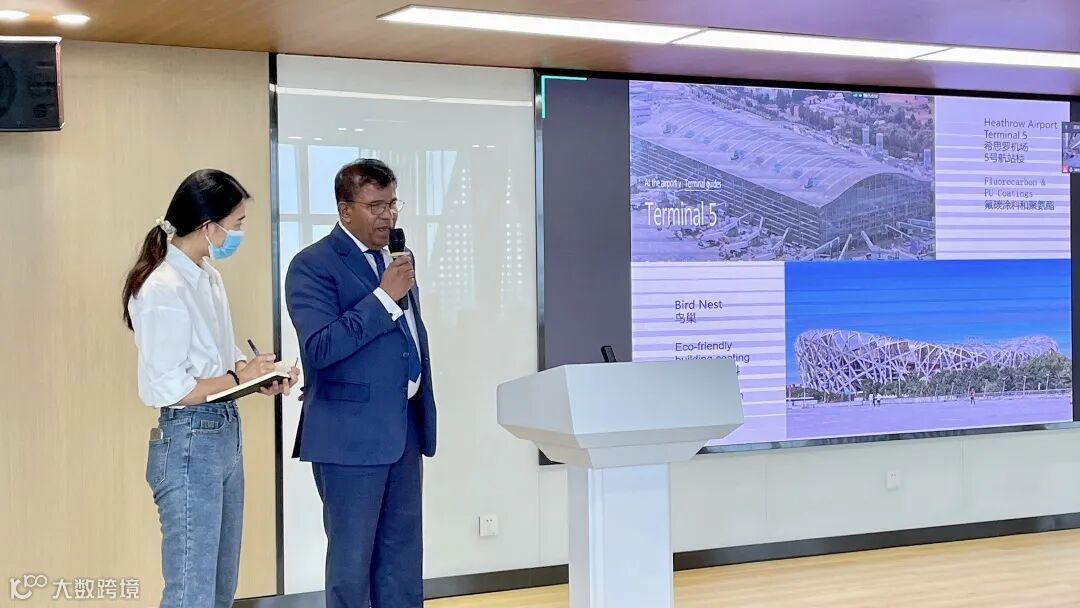 湖州市吴兴区核源金属新材研究院副院长、首席研究员西瓦桑布•博姆 Sivasambu Bohm 向参会企业介绍其运用石墨烯应用技术开发出的相关产品,如石墨烯导电剂、石墨烯复合涂料、石墨烯墨水、用于流行病防护的石墨烯金属纳米复合材料、高导热热扩散石墨烯薄膜等。