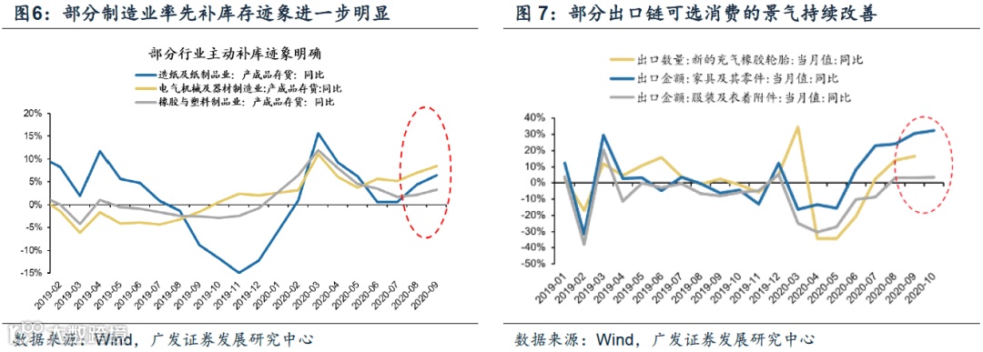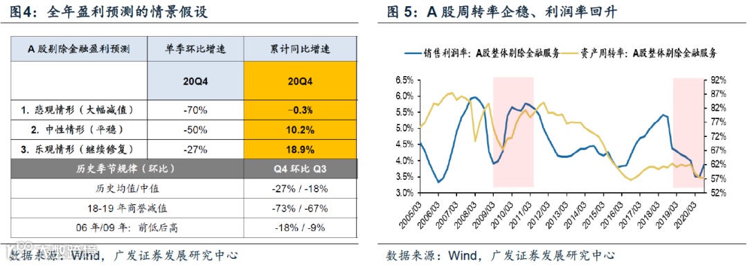 (三)本周第二个积极变化来自于A股三季报盈利扩张幅度超预期。我们在11.4发布三季报深度报告《“结构性”扩产,“出口链”先行》,在不发生因疫情带来大规模资产减值的情况下,A股分子端盈利改善将持续至21Q1,三表修复较为健康,从总量到结构相互验证。首先,Q3盈利修复强劲:今年前三季度A股盈利已几乎抹平疫情影响,A股非金融净利润绝对值已经和去年同期持平,Q3单季利润同比增速由负转正至31.9%,且Q3单季净利润环比增速创历史新高;在Q4不发生大规模减值的基础上,预计A股非金融年底累计盈利增速回升至双位数正增长。其次,利润率扩张、杠杆率合意、现金流回血,从三表修复来看均较为健康。A股毛利率触底回升拉动三季报A股非金融ROE继续改善,杠杆率继续窄幅波动,而经营现金流改善显著抵消了货币与信用环境变化后对筹资现金流的影响。最后,中游制造和可选消费成为业绩改善的主力军,并有望在“出口链”的拉动下开启新一轮结构性扩产周期。中游制造产能周期启动,其一要看疫情后回补投资的持续性(是否提升周转率)、其二要看供给上升后会不会造成供需失衡(是否冲击利润率),综合周转率、利润率可以甄别后续业绩持续的确定性较高。而可选消费与服务,利润率与现金流双修复,景气改善也有进一步提速。
