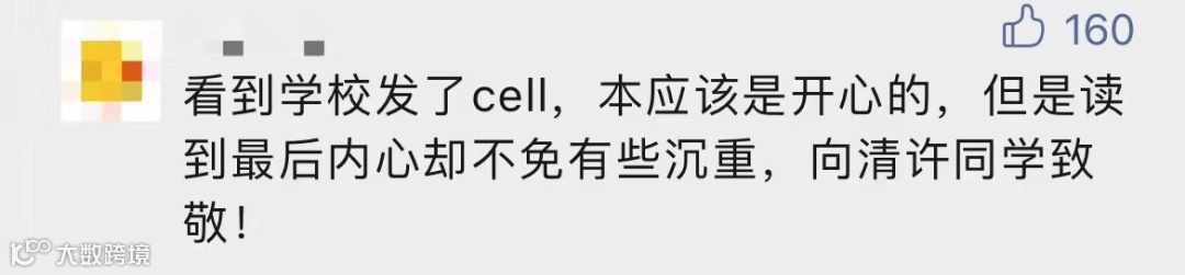 评论区,网友都在向他致敬:“看到学校发了Cell,本应该是开心的,但是读到最后内心却不免有些沉重。”