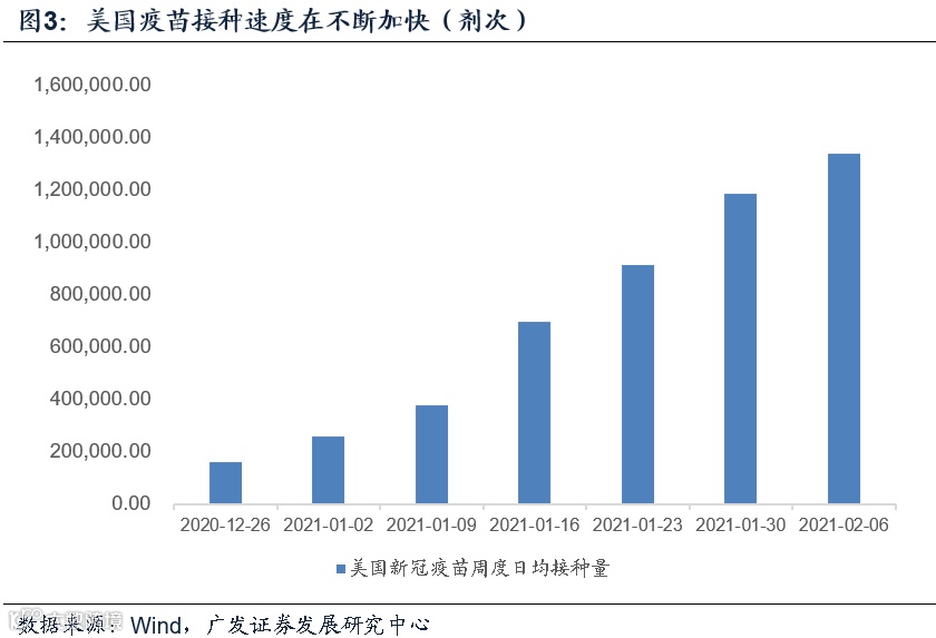 全球疫苗接种已在快速推进,截至2月1日全球已完成接种1亿剂次,其中中美超5500万,欧盟计划今夏完成70%的人群接种。疫苗对全球经济的累积影响将初步呈现,美债收益率将继续受到全球复苏过程的驱动。