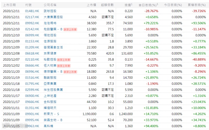 | 香港市场招股公司一览 |