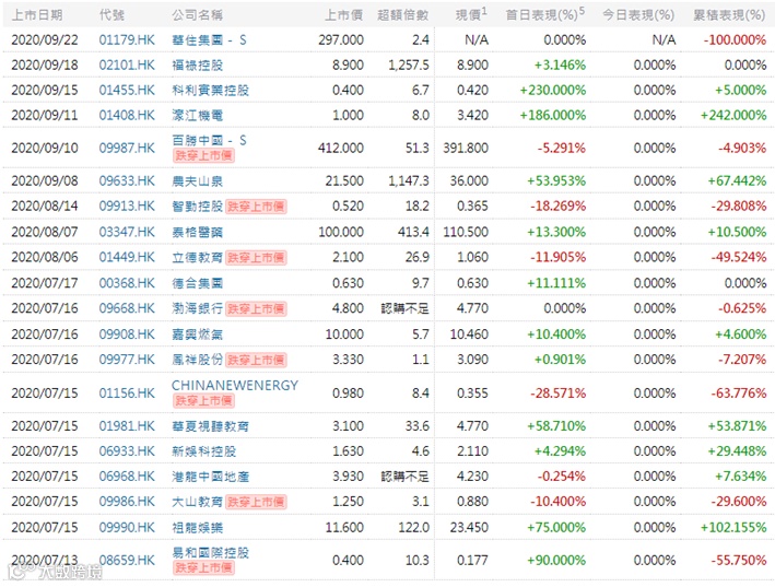 | 香港市场现时招股公司一览 |