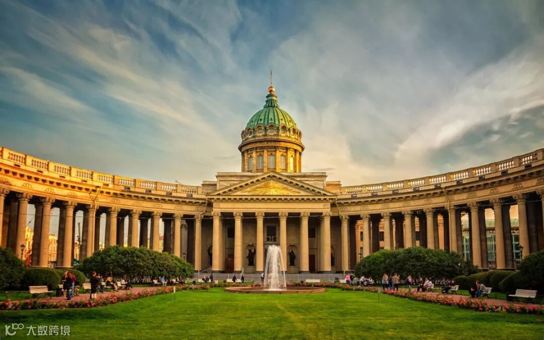 随后外观喀山大教堂,位于圣彼得堡涅瓦大街上,由俄罗斯建筑师沃罗尼欣设计,教堂以古罗马圣彼得教堂为原本,是典型的俄式教堂。