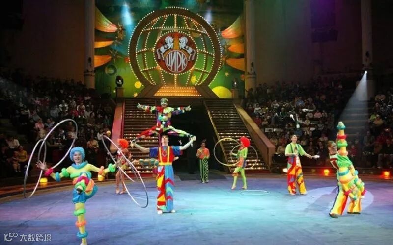 随后返回莫斯科观看马戏表演,俄罗斯大马戏至今已有138年历史。最擅长驯演大型猛兽、滑稽小丑、大跳板和高空飞人等项目,深受当地人欢迎。
