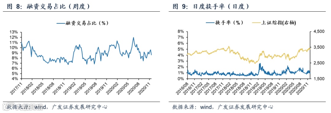 (1)融资交易占比:上周为8.6%,前一周为9.6%;