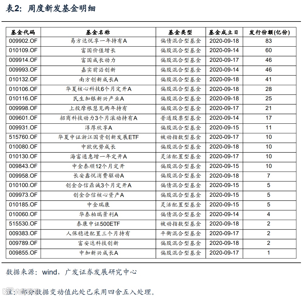 (3)新发基金(股票型+混合型):上周新发基金规模为453亿元,前一周新发基金规模约564亿元,新发基金规模大幅回落,但仍处于历史较高水平。