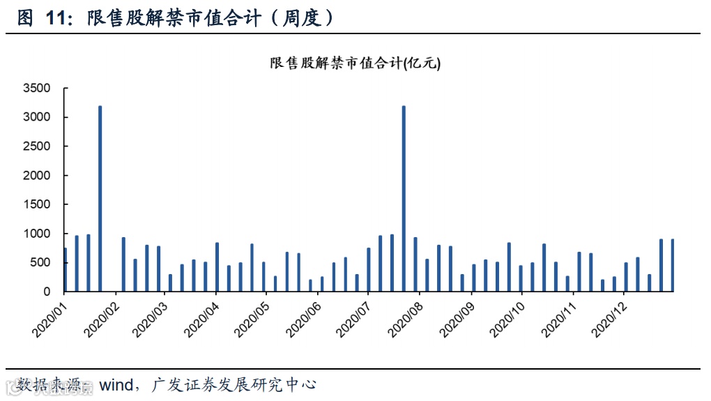 限售股解禁:上周限售股解禁496亿元,前一周限售股解禁546亿元。预计本周限售股解禁830亿元。