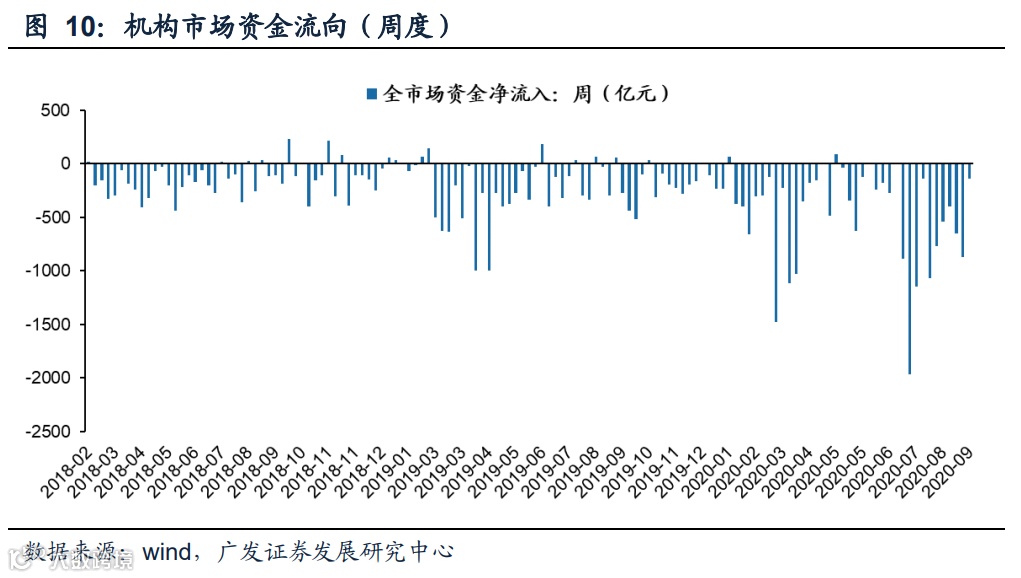 说明:二级市场的银证转账数据从17年6月16日以后不再更新,故此后A股资金流动合计数据不包含此项目;本报告数据更新至上周日(2020年9月20日)。