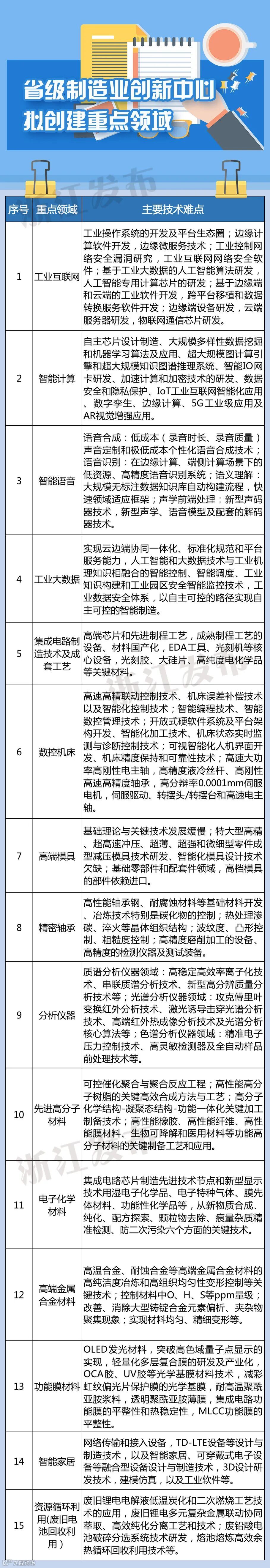 近日,省经济和信息化厅、省财政厅印发《浙江省制造业创新中心建设提升实施方案(2021-2025年)的通知》。