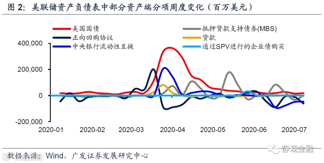 相比之下,乍看本轮扩表数字确实有点“大水漫灌”的感觉,但扩表伊始美联储已经对企业债购买等计划提供了明确的退出机制说明本次扩表存在部分临时性因素。此外,扩表以来美联储每周正回购、美债购买及企业债购买规模都在变化亦表明本次扩表极为灵活,美联储将依据市场波动变相调整,随时可进亦随时可退。简单地说,金融危机后的三轮扩表是长期定量宽松,相当于“救穷”;而本轮扩表则是阶段性变量宽松,更像是“救急”。