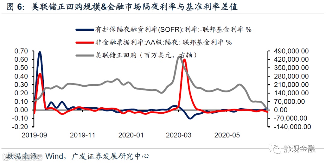 情形三:疫情影响超预期的同时,美国金融市场条件再度大幅收紧,令美联储重启短期扩表操作。基于前文,疫情持续时间决定美联储长期操作行为,金融市场条件决定美联储短期动作。假若Q3美国金融市场条件再度明显收紧,美联储势必重新启动正回购等操作缓解市场流动性压力,届时美联储资产负债表将再度快速扩张。