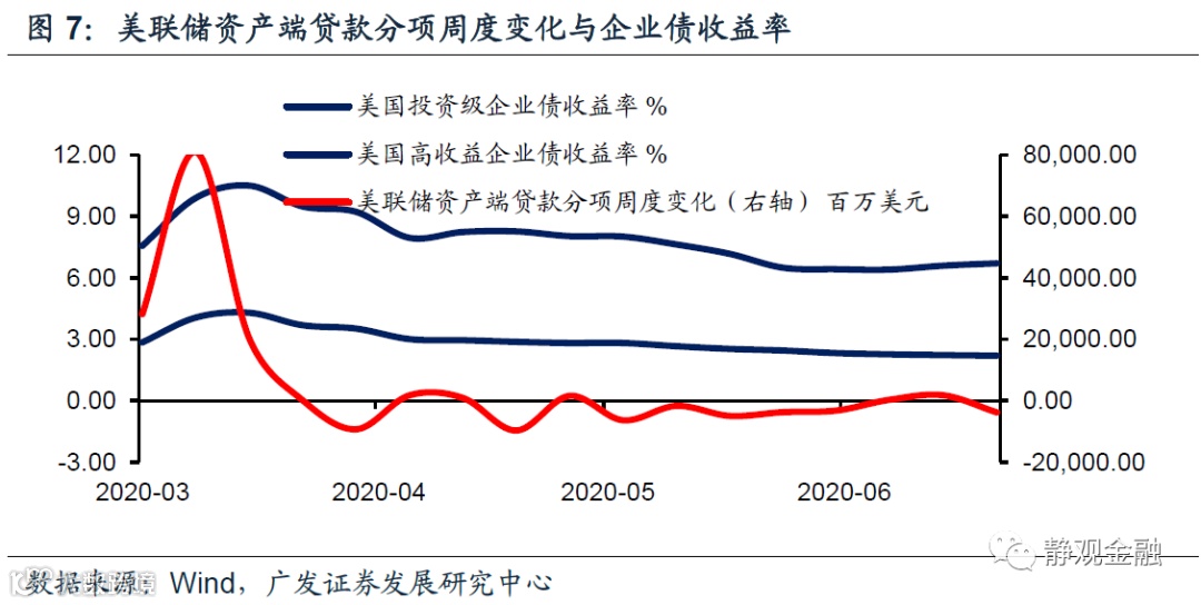 第二,贷款分项是为了改善企业融资条件。该分项包括为一级交易商及货币基金市场提供的临时性贷款融资、配合财政薪资保障计划(PPP)的工资保障计划流动性贷款(PPPLF)等二级分项。如图7所示,美联储资产负债表中贷款分项环比收缩与企业债收益率回落同步,可以理解为随着实体融资条件改善,临时信贷项目正在退出。但如图8所示,并非贷款中所有二级子项都在收缩,PPPLF看似仍处于扩张态势(下文进一步解读)。