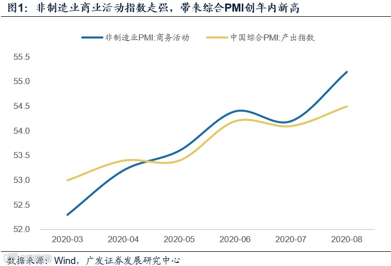 1)非制造业商业活动指数走强,综合PMI年内新高。