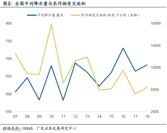 2011年以来,单位受灾面积受雨季洪涝影响处于下降趋势,或反映机械化栽培、优质品种培育、单产面积提高等种植技术提高,农作物雨季洪涝抵抗能力显著提升。然而雨季影响仍值得重视,近期稻谷最低收购价上调或已确认重农抓粮信号,考虑到当前粮食库消比处于历史较高水平,叠加病菌性虫害风险或阶段性加剧粮价紧平衡预期。