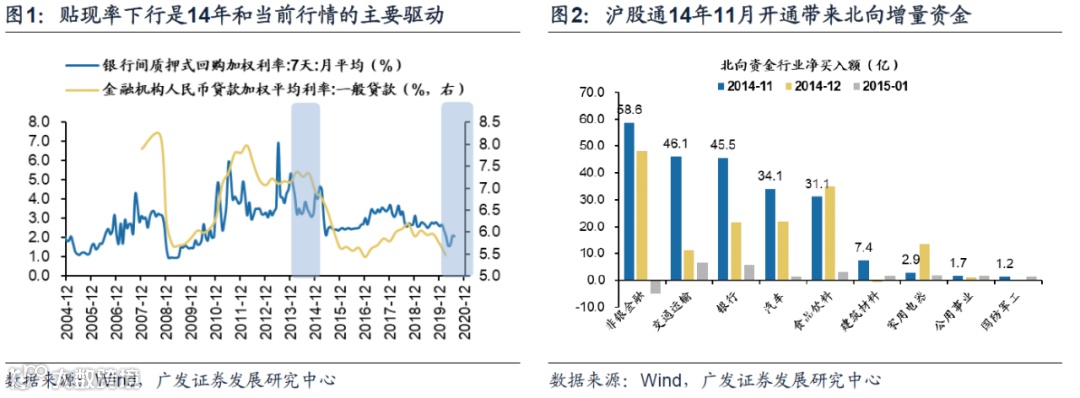 尽管当前行情与14年有众多相同点,然而,总结14Q4行情,虽然是低估值板块领涨,但主题炒作的色彩却较为浓厚。除券商、保险以外,其余热门行业相对TMT的盈利增速并未在Q4明显上行。经济见底预期证伪、增速持续下行+刺激政策想象空间打开、流动性大幅宽松+风险偏好持续上行的组合下,14Q4的上涨线条主要集中于政策想象空间和风险偏好上行驱动的方向——1. 地产调控政策放松和降息正面驱动的地产链条;2. 一带一路主题概念爆发拉动基建、港口等权重股上行;3. 降息、成交量和融资规模迅速放大,叠加信用业务和资管业务想象空间的非银金融板块。