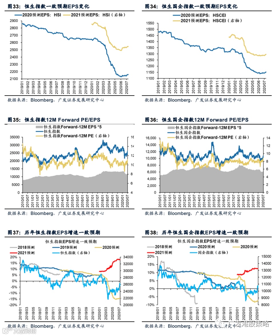 本周(7.6-7.10)彭博对于恒生指数、恒生国企指数20年EPS一致预期增速小幅上调。