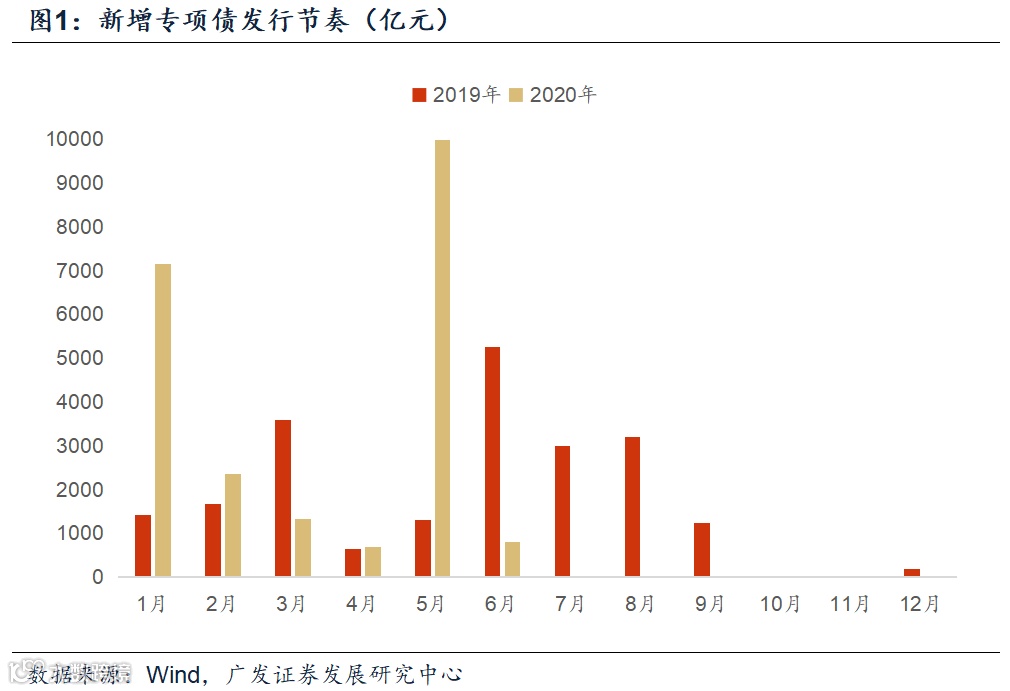 上半年地方新增专项债已发行22500亿元,因此下半年还将发行15400亿元,这一数额依然相当于去年全年2.15万亿额度的70%。需要注意的是,7月地方债将为抗疫特别国债的发行让路,整体发行量不会太大,并且四季度出于气候等原因往往也是地方债的发行低谷期。因此,8-9月将成为1.5万亿专项债发行的集中期,这一发行高峰预计将对三季度的基建项目产生提振作用。