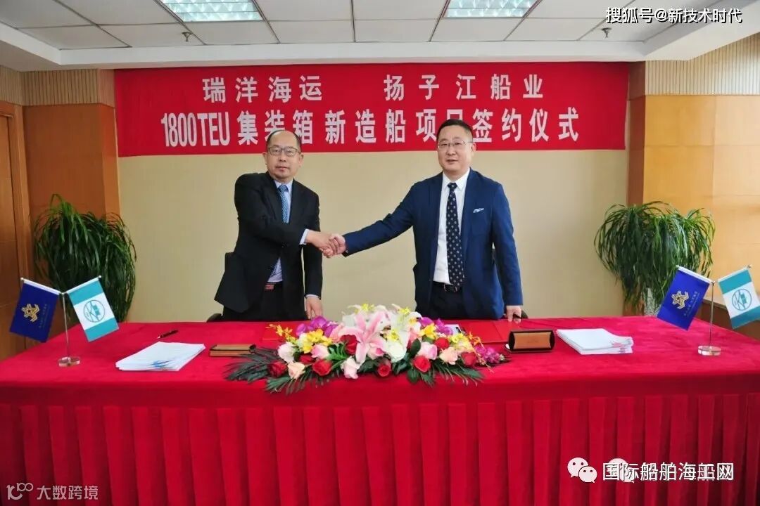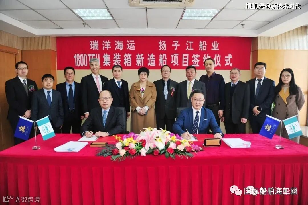 近期,民营船厂扬子江船业公司箱船新订单形势喜人。新年新气象,我们迎来了2021年第一单——瑞洋海运8艘1800TEU集装箱船建造订单。瑞洋海运董事长原文涛先生、扬子江船业集团董事长任乐天先生、海兴航运董事长孙兴涛先生和来自上海船舶研究设计院、ABS船级社代表等嘉宾共同见证了新订单的签约。