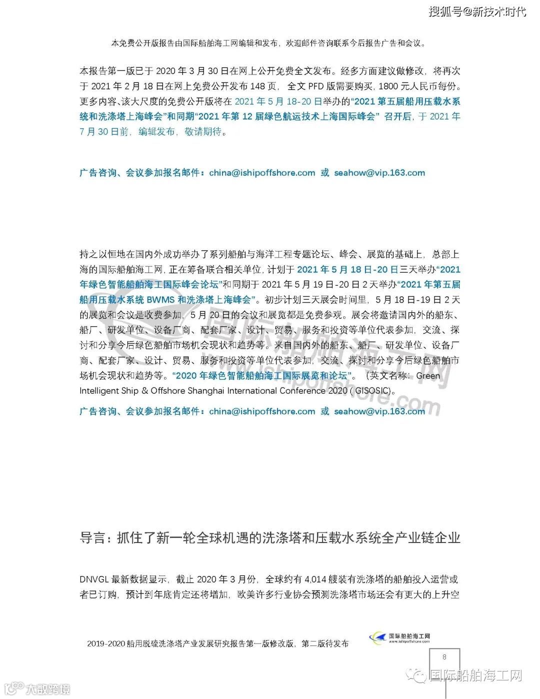更多内容、该大尺度的免费公开版将在2021年5月18-20日举办的“2021第五届船用压载水系统和洗涤塔上海峰会”和同期“2021年第12届绿色航运技术上海国际峰会” 召开后,于2021年7月30日前,编辑发布,敬请期待。