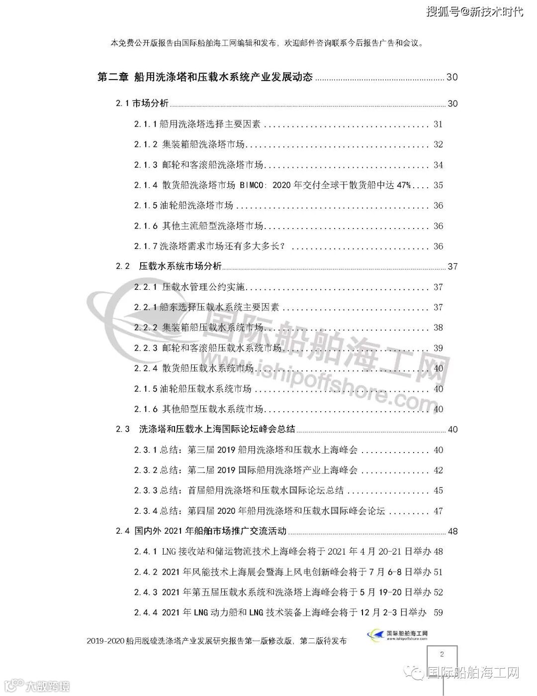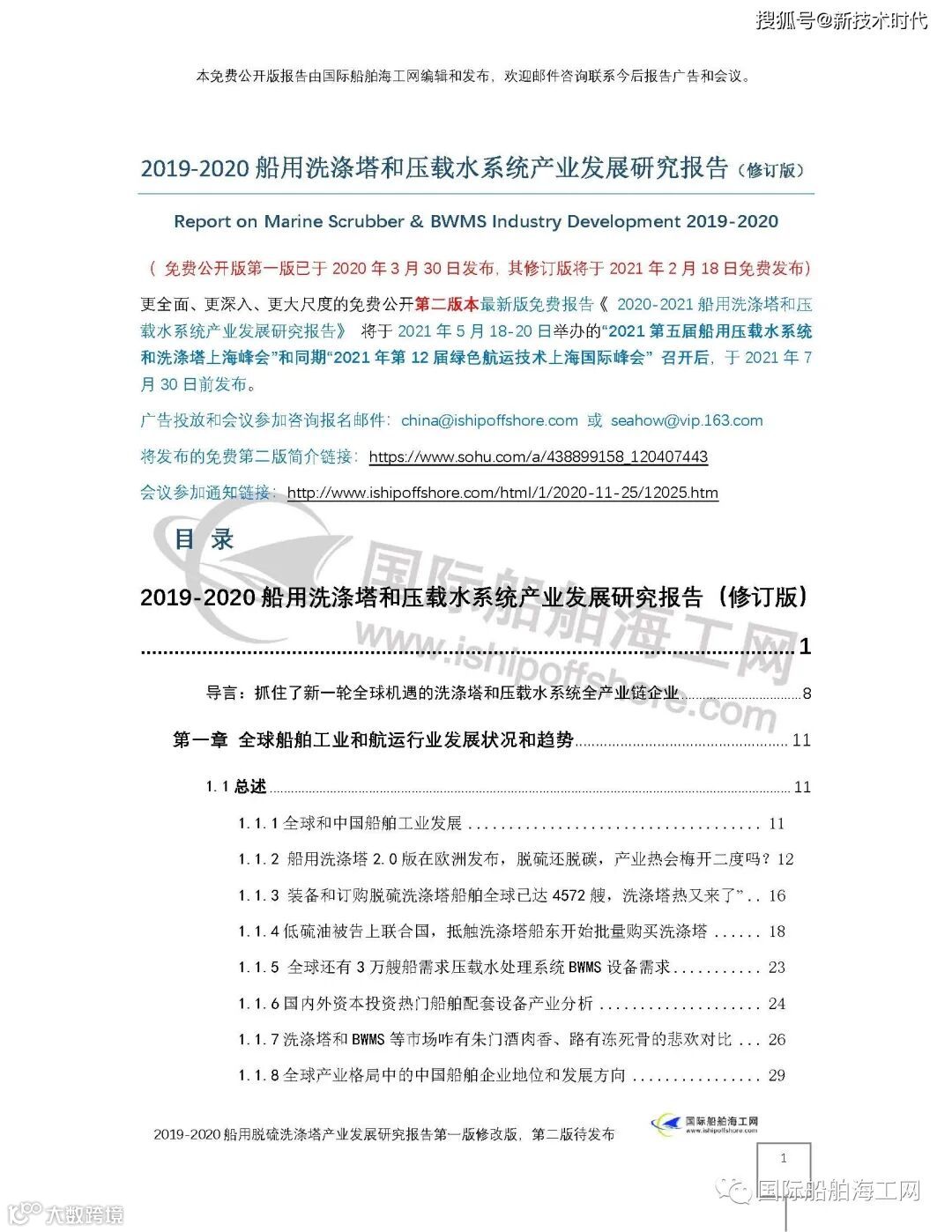 正筹备将于2021年5月18日-20日两天在上海市举办“2021年第五届船用压载水系统BWMS和洗涤塔上海峰会”和同期举办“2021年绿色智能船舶海工国际展览和峰会论坛”的国际船舶海工网宣布,在已于2020年3月30日在网上公开免费发布“船用洗涤塔2020年研究报告”全文后,经多方面建议做修改,将再次于2021年2月18日在网上免费公开发布最新版150多页的2019-2021船用洗涤塔和压载水系统产业发展研究报告(修订版),全文目录如下:
