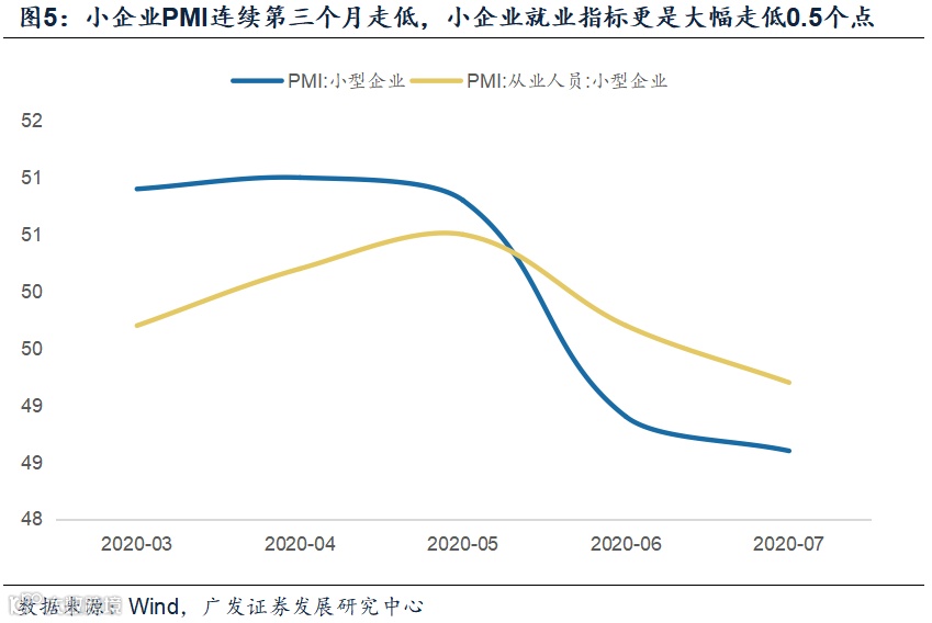 我们理解这一点一则和外需恢复程度不够有关,比如劳动密集型的出口行业,目前恢复程度仍低;二则和服务业恢复程度有关,而它们是很多中小制造业企业的上游。