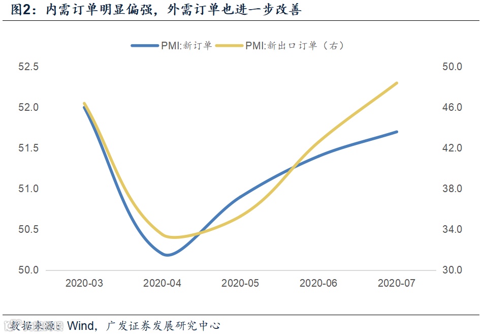制造业PMI升至过去4个月以来最高,显示经济修复过程仍在继续。在发电耗煤数据停更后,这一指标的短期坐标意义较往期更强。7月PMI为51.1,较上月继续上升0.2个点,数据已升至过去4个月以来最高。经济修复过程仍在继续。
