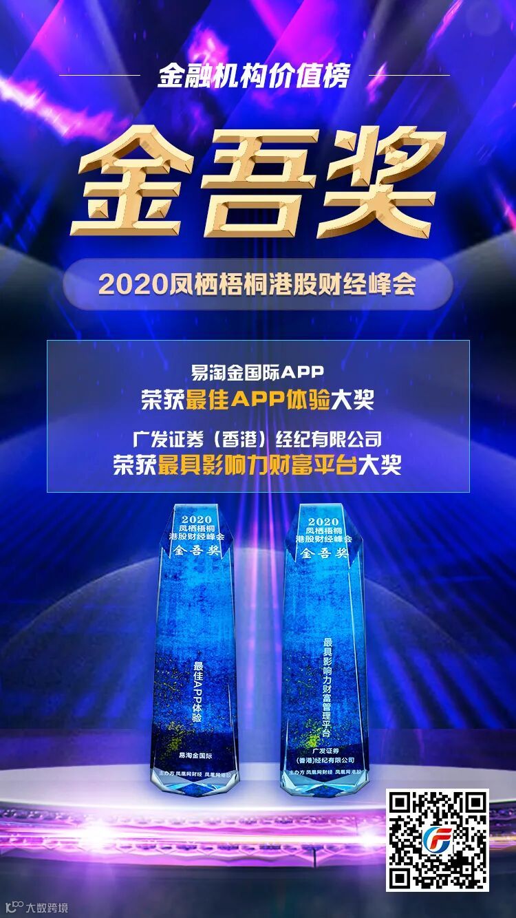 主办单位通过综合的行业数据、专家深度解析等方式评判,广发证券(香港)经纪有限公司荣获“最具影响力财富管理平台”、其官方APP易淘金国际荣获“最佳APP体验奖”!