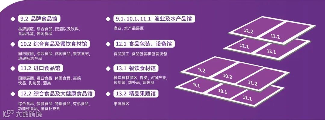 本届展会主办方将延续全产业链办展思路,深挖行业资源,聚焦行业发展的最新趋势和食饮食材企业当下最切实的发展需求,以更聚焦、更细分、更专业的题材布局及专区设置,特设:品牌食品馆、综合食品及餐饮食材馆、进口食品馆、精品果蔬馆、大健康食品馆、渔业及水产品馆、食品包装设备馆等10大展馆,展出品类涵盖预包装休闲食品、果蔬及绿色农产品、进口食品、葡萄酒及烈酒、高端饮品、咖啡及茶饮、水产品、肉类及冷冻食品、餐饮食材、乳制品及健康食品、地方特色及标志食品、食品包装及设备等,实现食品全产业链资源共享互补及有效配置,为广大参展商和观众挖掘新商机、把握新趋势提供机会,推动国际企业“引进来”,中国企业“走出去”。