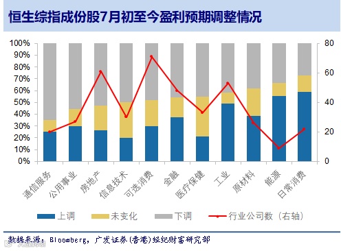 整体来看,自七月的中报季开启以来,恒指的盈利预测再次承压;