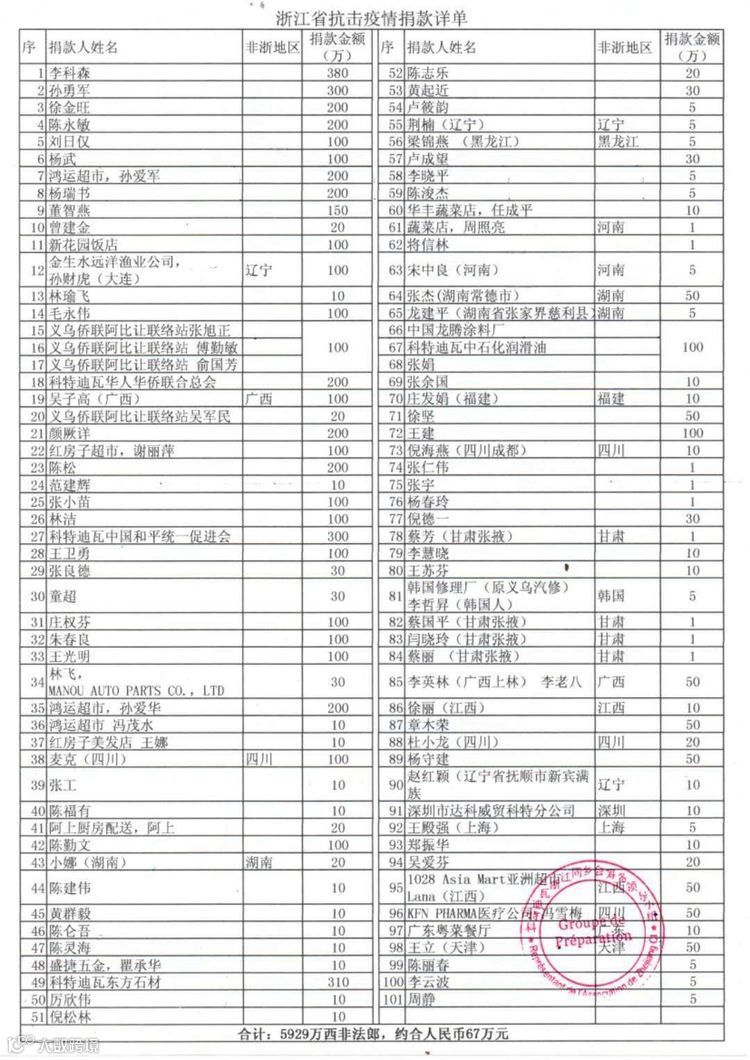科特迪瓦浙江同乡会孙爱华介绍,这次捐赠活动由李科森、孙勇军、陈松、陈永敏、徐金旺、颜厥洋、杨瑞书、孙财虎、谢莉萍、孙爱军、孙爱华、杨武、杨守建、王建等在科侨商发起,同时得到科特迪瓦华人华侨联合总会、科特迪瓦中国和平统一促进会以及华人华侨在科企业等的支持,共捐赠60万只口罩,总价值69万元人民币。