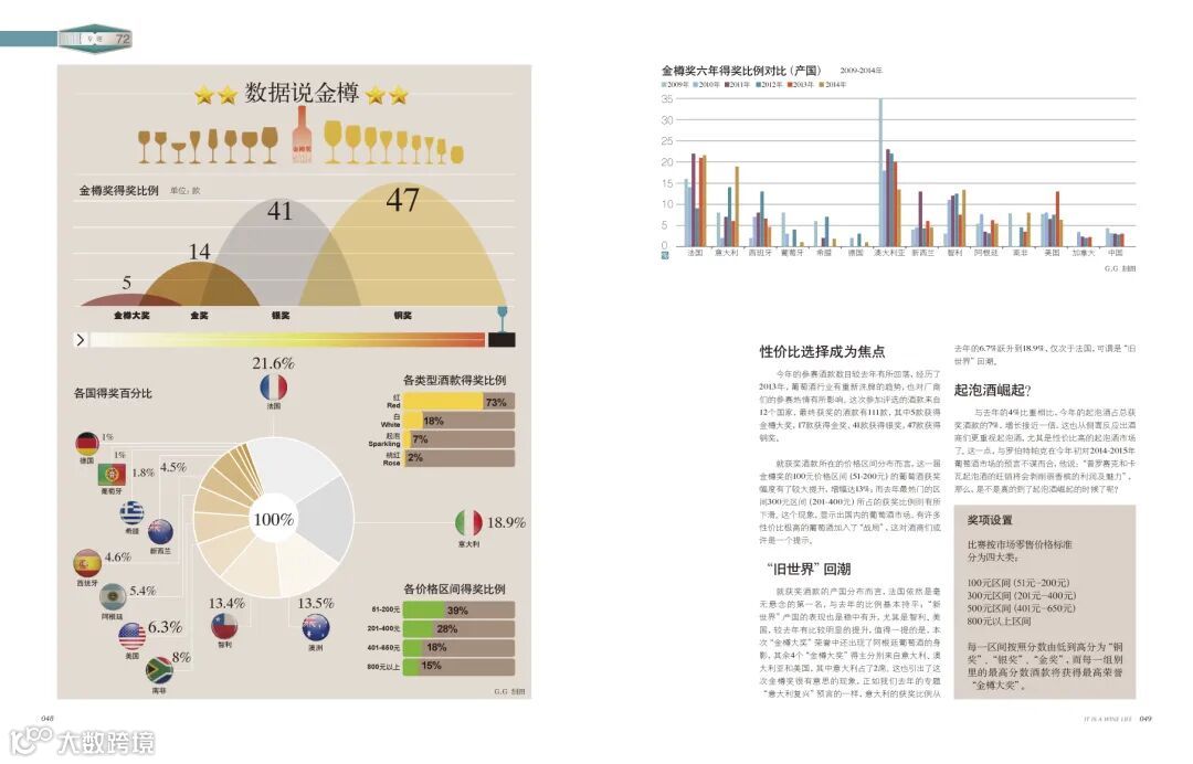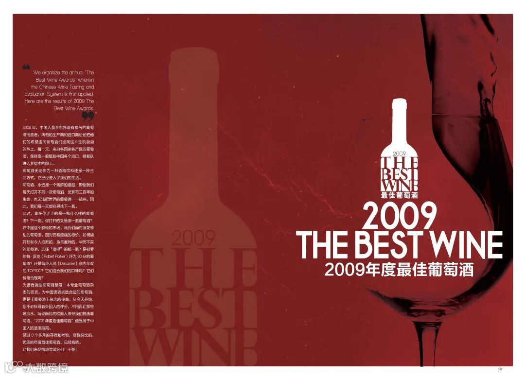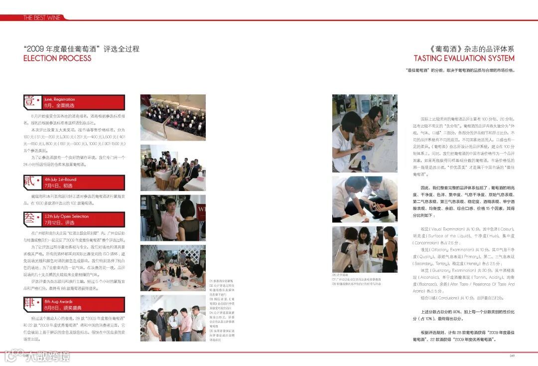 2009年:《葡萄酒》杂志创刊,发起第一届金樽奖葡萄酒大赛。那一年,我们还没有为这场大赛命名,杂志的专题是“2009年度最佳葡萄酒”。这一期杂志用32页的篇幅,传递着举办这场大赛的初衷,初选到终选的过程,以及登榜酒款的详细信息。