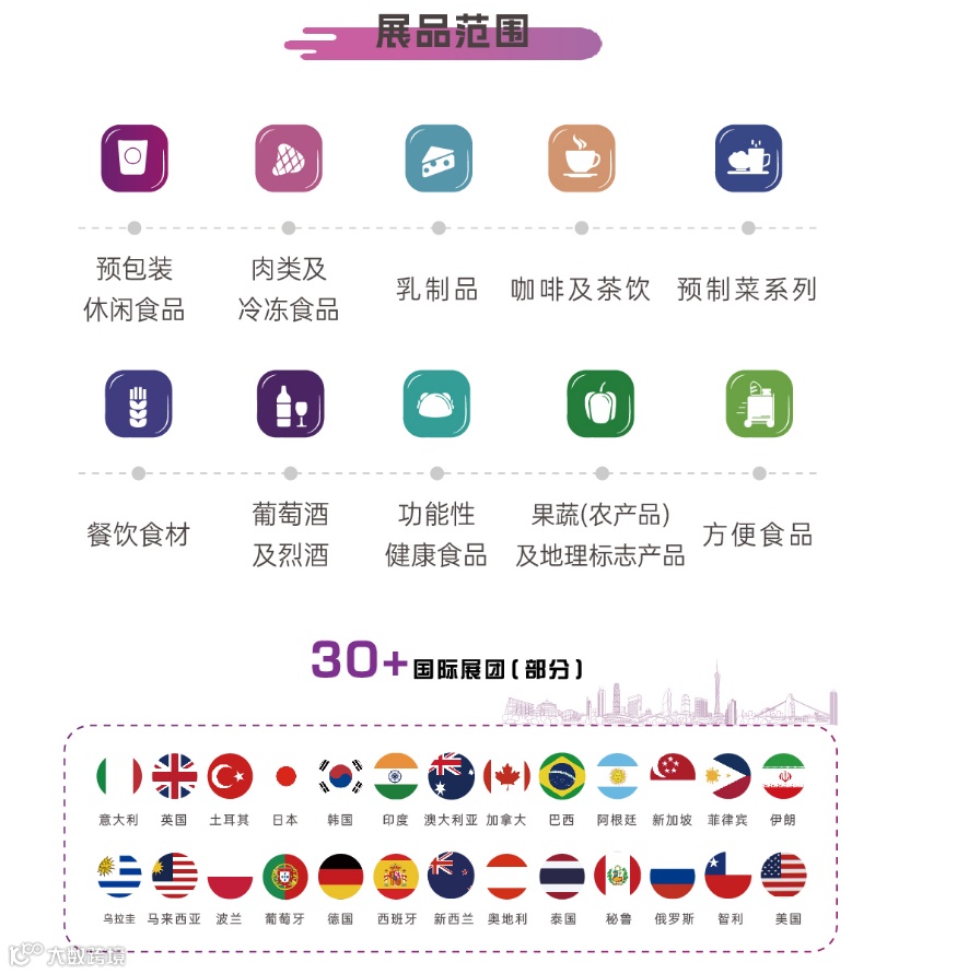 2023年,中食展®携手Food2China Expo全面升级,联合广州国际食品食材展、Wine to China Expo(源于TOEwine)、广州(江南)国际果蔬产业博览会,五展合一,充分发挥政府、行业商协会及企业合力,共同打造以广州为中心、链接全球、辐射全国的国际食品展览会。