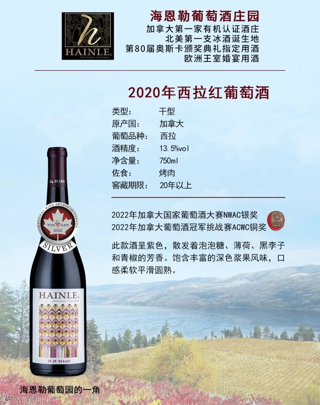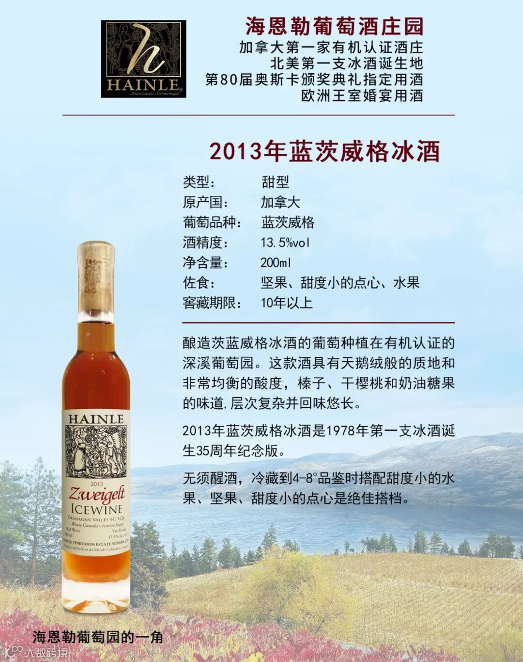 HAINLE葡萄酒庄园是BC省最早成立的8家酒庄之一,也是加拿大第一家有机认证的酒庄。背靠水果之乡——欧肯娜根湖区独特的地理条件,以及HAINLE酿酒师的智慧,使得酒庄酿造的干红和干白葡萄酒在许多重要的国际葡萄酒大赛上屡获金奖,在业内享有极高声誉。