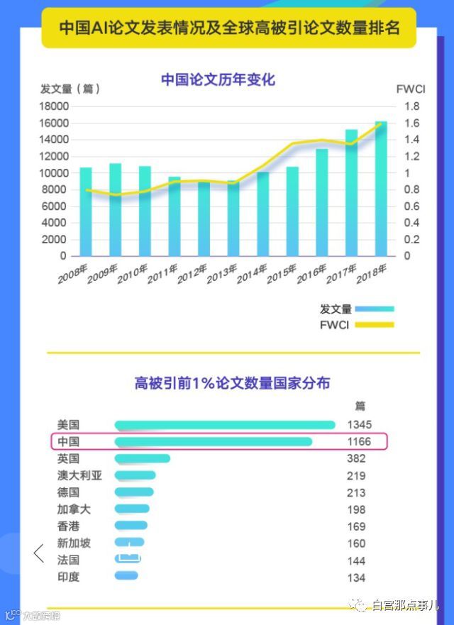 中国人工智能论文发文量居全球最高。(数据来源:《人工智能发展报告2019》)