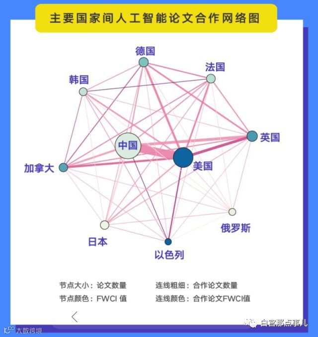 美中两国之间人工智能科研论文合作规模最大。(数据来源:《人工智能发展报告2019》)