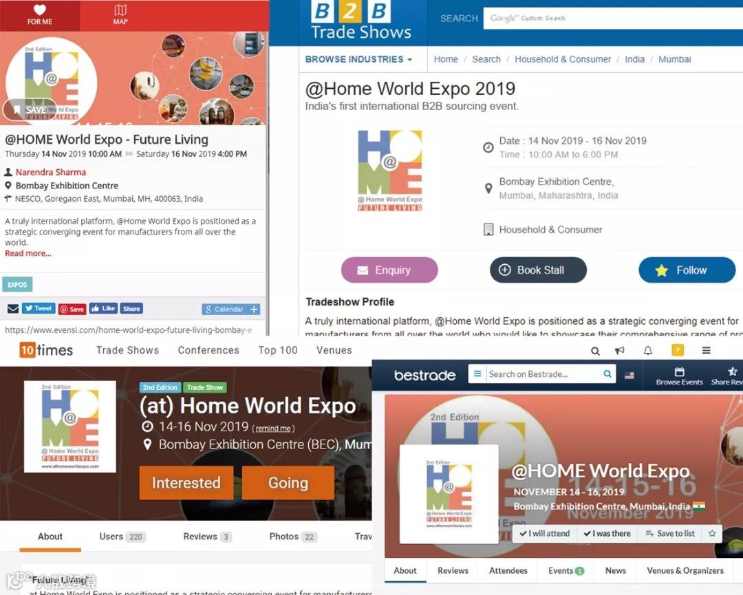 中国商品(印度孟买)展览会已连续成功举办16届,根据多年的大数据统计,@HOME印度国际智能家庭、家居用品博览会当地专业买家数据库则达到66219个,并根据这些数据库通过电邮、邀请函、电子通讯、短信、拜访等等实现定向宣传,通过官方网站、社交媒体等方式,精准捕获目标客户关注。